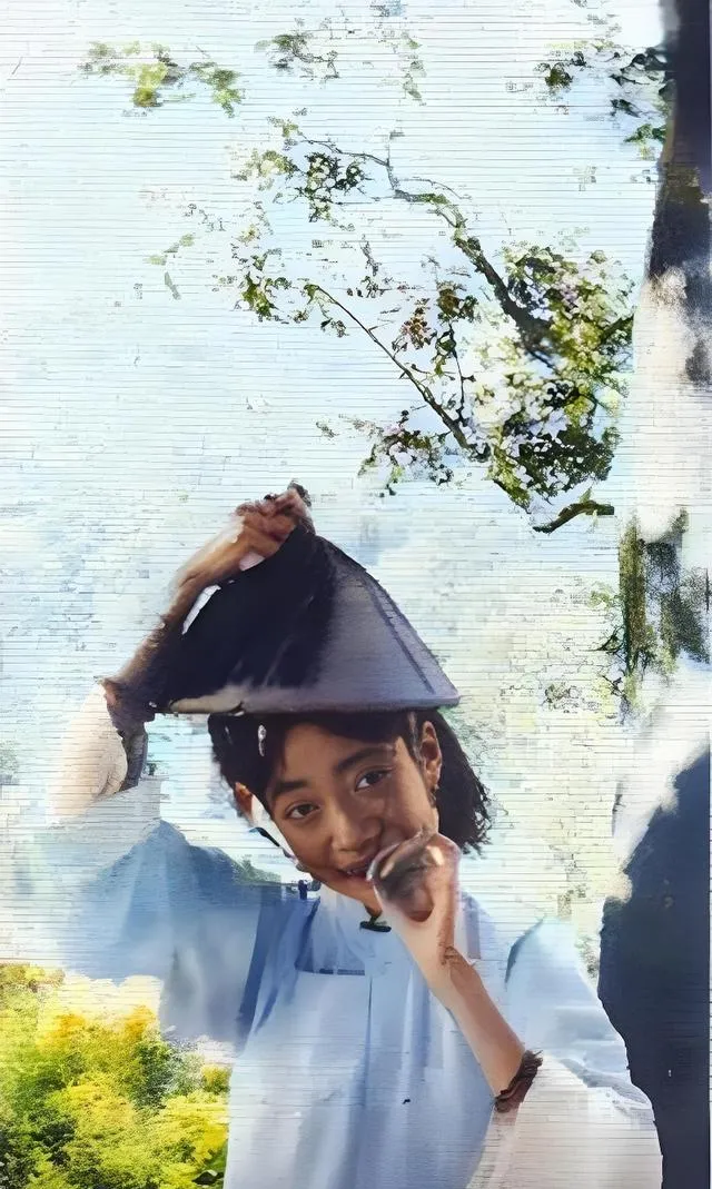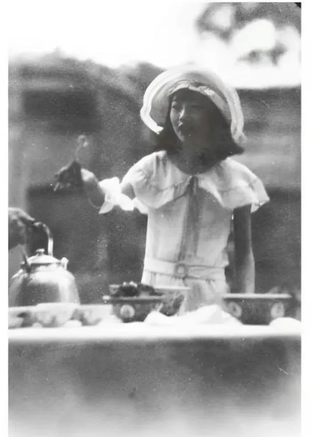 这个小姑娘举着一顶凉帽往头上一扣,眼睛弯成月牙,袖口露出细细一圈暗纹滚边,风从树梢下来,画面像在打趣,她学着太监的小碎步,压低帽檐做个鬼脸,宫里头那套端着的规矩,在这一刻松了口气,照片有点抖,可那股活泼劲真不抖。