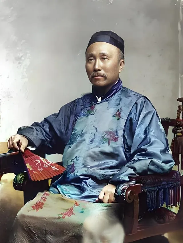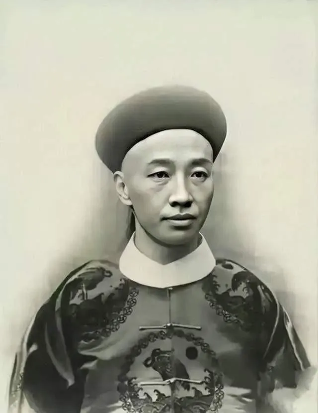 这个人穿朝服,圆帽压得正,胸前补子是兽纹,缎面黑得油亮,眼神不硬,却很稳,像刚从衙门出来,坐在白墙前给人拍一张规整的登记照,以前拍照是把身份穿在身上,现在拍照把身份藏在手机里。