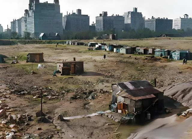 这一片叫棚户区,纸板、铁皮、木板拼起来,屋檐像没睡醒的眼皮,地上水沟拐着弯,远处高楼一排冷冷地看着,空地上风很勤快,把灰一层层梳过去,小时候我住过工地边的平房,冬天晚饭后得先把炉灰扒松,不然夜里就冻醒,邻居大哥常说,人能挤在一起过一天,就是办法,现在社区楼下绿地、长椅、路灯都齐,可走得太快的时候,心反倒没处落脚。