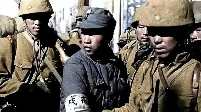 图中这位年轻士兵臂上绣着“卫戍”两个字,这条臂纱说白了就是身份,也是他不肯摘下的骨气,几名日军围着他,脸上的表情各不相同,有的阴冷有的麻木,他却偏偏直着脖子往侧前看,像在找队伍的方向,家里老人常说,打到这步谁都怕,可怕完了还得站稳,尤其是守都城的兵,更不能低头。