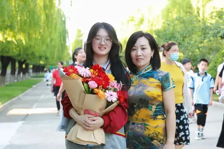 2023年6月10日下午,高考结束后,母女俩在校园里合影。