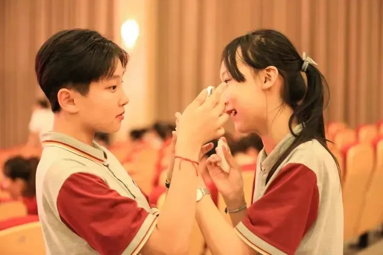 2021年7月1日,庆祝中国共产党成立100周年师生文艺汇演,学生上场前在化妆。