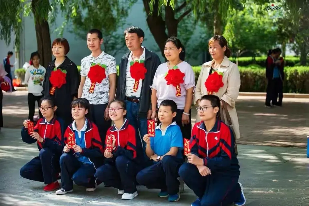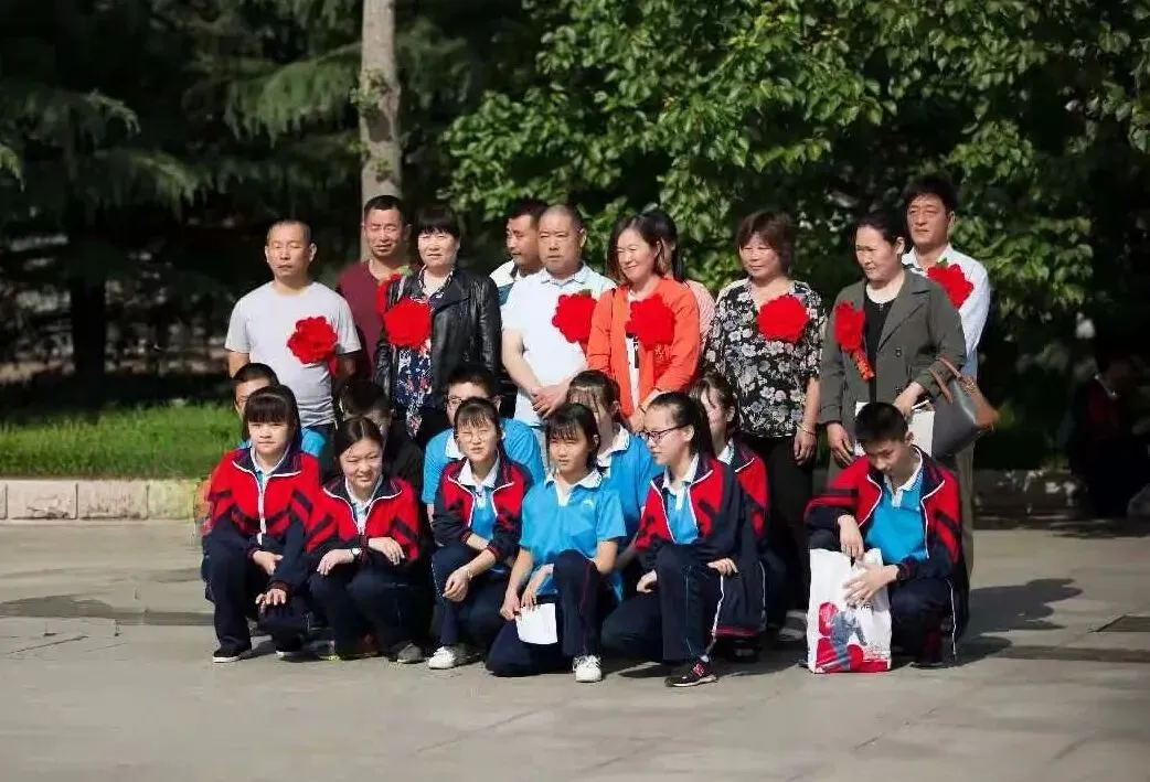 2021年3月,在外研学活动过程中,偷吃糖葫芦的班主任,被我抓个正着。2018年5月,初中部家长会,部分家长与孩子合影。