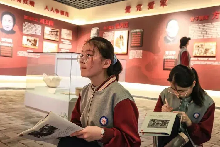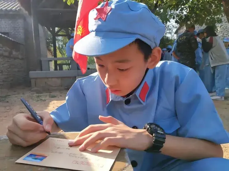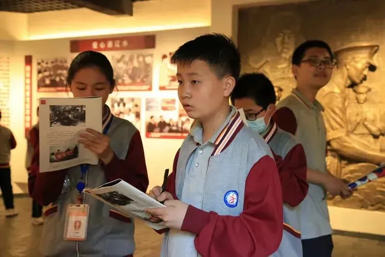 2021年5月20日,在红嫂纪念馆认真抄写的学生