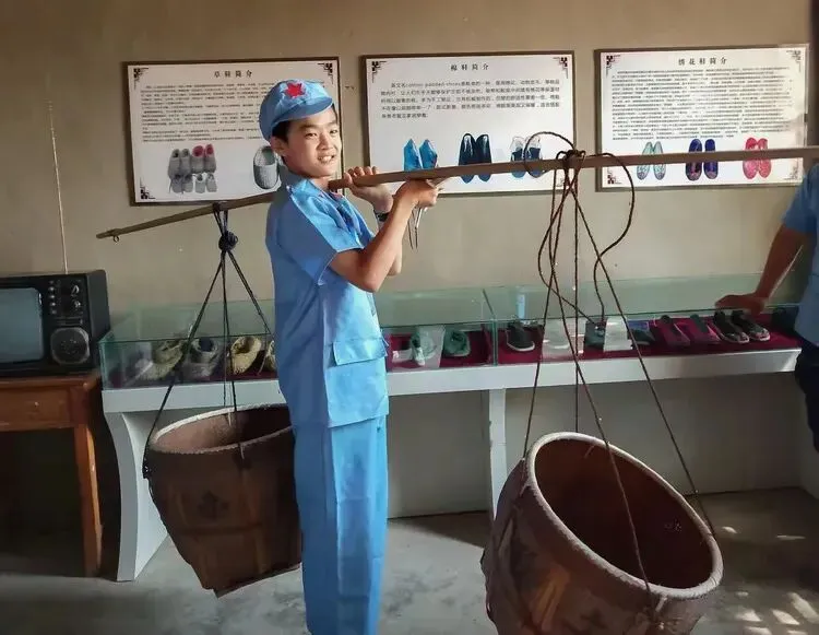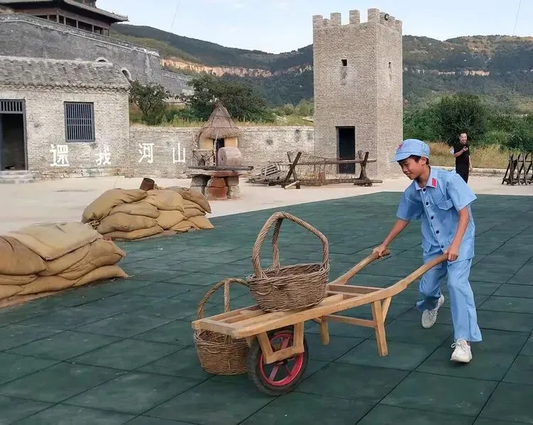 学习挑担子,推小车。这可是陈毅老总称赞过的沂蒙山的小推车。