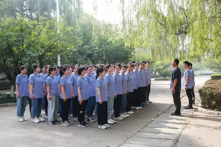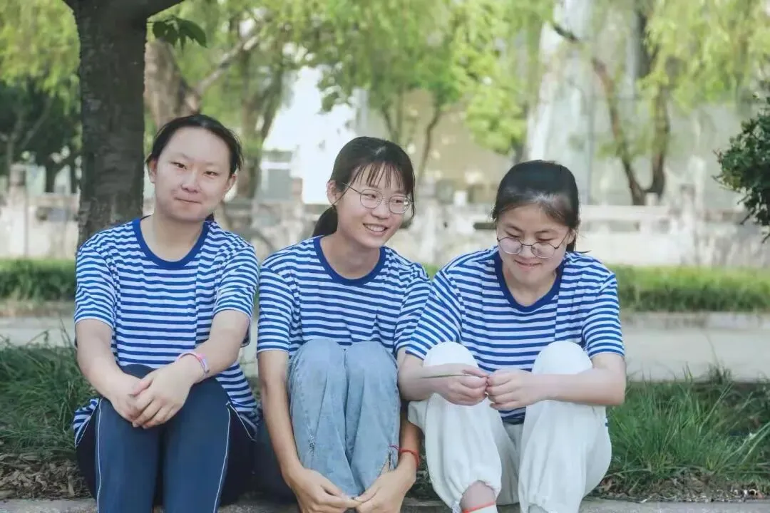 校园里难得的这抹海军蓝,2021年9月7日,军训期间,高三复习班的学生在休息。