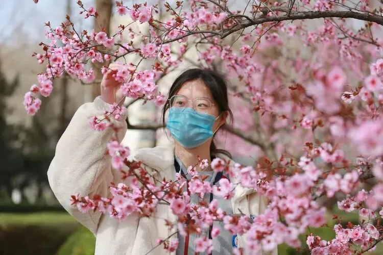 2022年4月,疫情封校期间。口罩能阻挡住病毒,却挡不住花香。