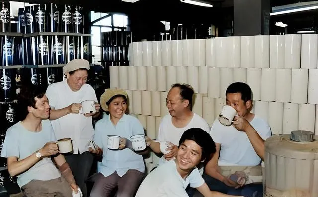 这个白口黑边的大缸叫搪瓷缸,瓷面厚实,敲一下“嗡”的一声脆响,画面里一人一只,手心捧着,酸梅汤冰着,汽水罐似的铁桶冒着汗,工友们端起来咕嘟咕嘟就灌,额头的汗线当场被压了下去,妈妈说七八月进厂区,先问的不是班次,是“今天有没酸梅汤”,以前降温靠一缸汤,现在靠中央空调,舒服是舒服了,这口人情味可不容易复刻。