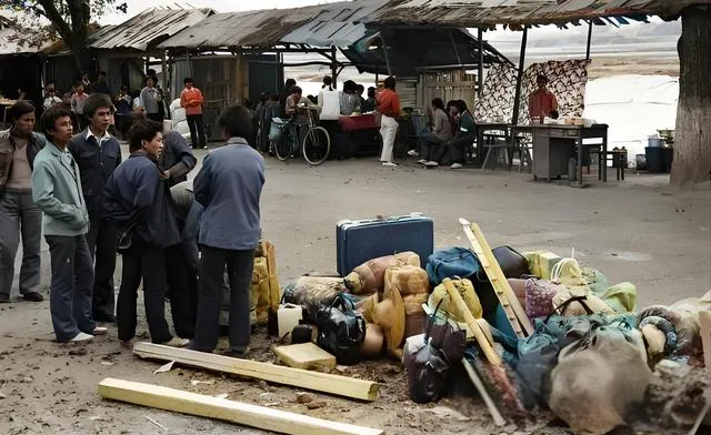 这堆鼓囊囊的家伙叫拼装行李,木板、帆布、棉絮、绳索交织在一起,男人们把包摞一处,人站在一旁等,一会儿抬腕看表,一会儿伸脖子望路,风把棚顶的塑料皮吹得啪啪响,爸说他第一次出远门就是这么站着等车,鞋底抠着地上的小石子,心里打着鼓,现在客运站换成了网约车和高铁站台,候车还在候,只是等的时间更可控了。