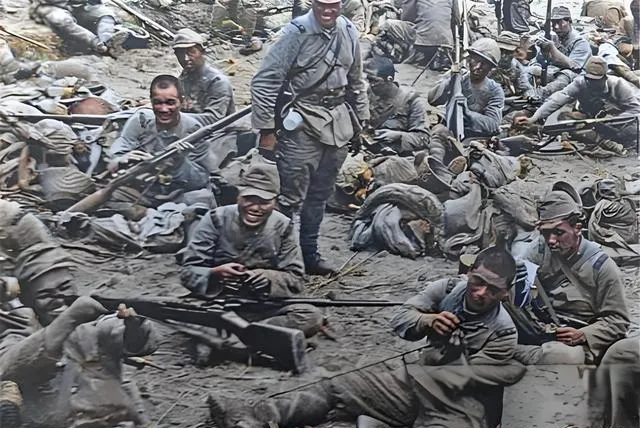 这群坐在泥地上的侵略者,端着枪还咧着嘴笑,泥浆糊了膝盖和枪托,表情轻飘得令人发冷,外公看见这张只吐出一句,笑得出的人,多半没在乎过别人的生死,以前战火里求活一回都难,现在我们看照片,也要记住谁在笑谁在哭。