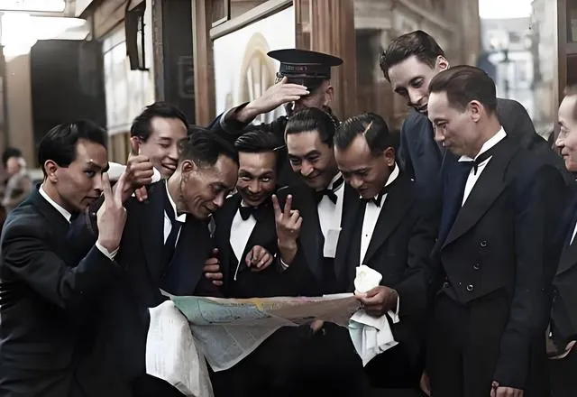 这群穿礼服的华人围着报纸,眼睛都亮着,两个指头比出V,神色里是憋不住的痛快,消息一落地,像从胸腔里拔出一根刺,笑意就顺着眼角往外涌,那一刻的轻松我们现在也能懂,和平这两个字,写起来简单,换起来要命。