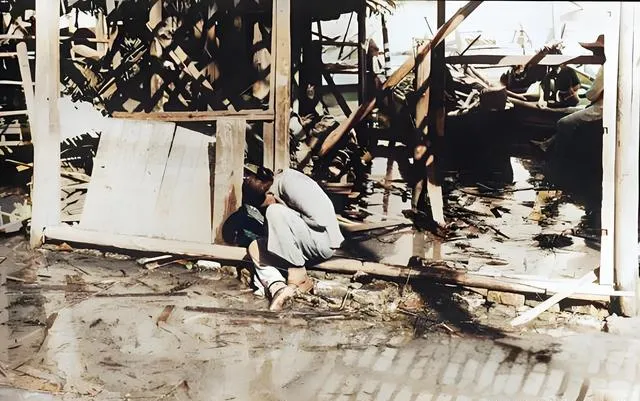 图中这位伏在断墙根的妇人没有露出脸,身上灰蓝的长衫被尘泥打湿,脚边一摊水映着破梁斜影,奶奶看见这张照片只叹了一句,“家没了,人还得活”,以前一场空袭能把一条街掀翻,现在我们抱怨停电十分钟,差得可真不是一星半点。