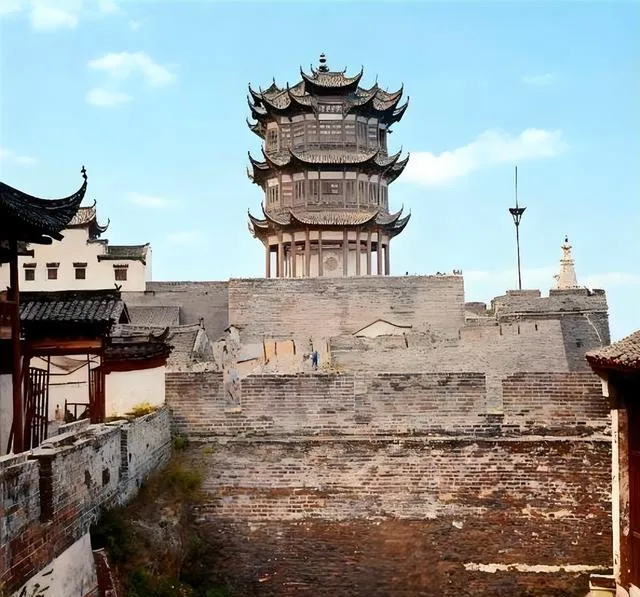 这个高挑的楼影叫黄鹤楼,同治年间复建的那一座,层层檐牙像叠起来的翅膀,底下砖城墙有裂缝和补丁,像缝过很多次的旧衣裳,当时的人站在城门旮旯里抬头看,估计也会嘟囔一句“好看是好看,就是不结实”。