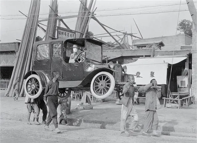 图中这辆有玻璃窗的叫封闭式黄包车,车厢是硬木骨架外包漆皮,四扇小窗能推拉,车灯挂在前檐上,算当年的“豪华款”,车夫握着双把,脚尖点着地面起步,肩背猛一沉,车就顺着街心线滑出去,听说那时坐这种车的人家底都不薄,进出戏园子或银行,一路风挡得严严实实,帽檐都不用扶。