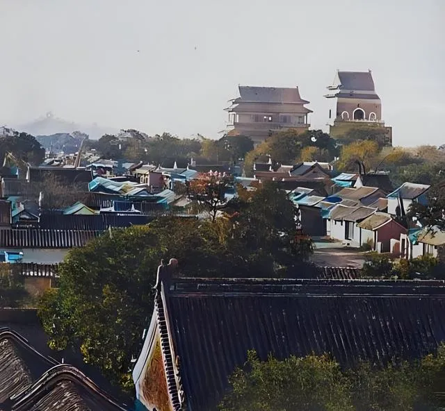 图中远处那两座高台就是钟楼和鼓楼,灰青的屋面像压着一片云,楼下是一片低矮的房脊,夹着树冠的绿意,奶奶说,老北京的方向感就靠它俩,抬头看一眼就知道自己身在何处,以前城里没有导航,靠的是耳朵的报时和眼睛的地标,现在手机一掏就明白,路认得更快了,可抬头的次数却少了。