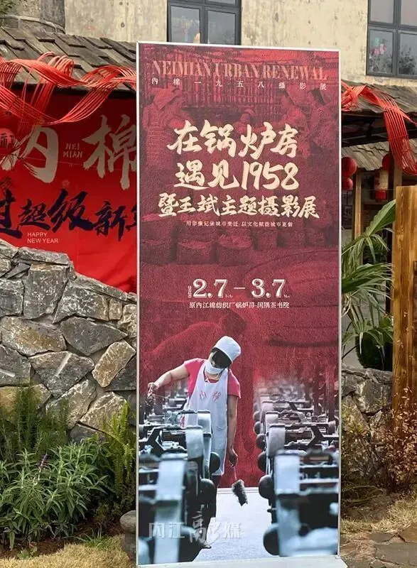 2月7日下午,细雨朦胧中,昔日轰鸣的厂区锅炉房早已变身雅致的“闲隅茶书院”,一场特殊的摄影展在此温情启幕——内江棉纺织厂老职工王斌镜头下的39张照片,将内江老厂建设的峥嵘岁月、车间纺纱的忙碌场景、工友午间小憩的温情瞬间一一定格,让“甜城牌”粗布的荣光与一代人的青春记忆,在复古工业风的空间里徐徐铺展。