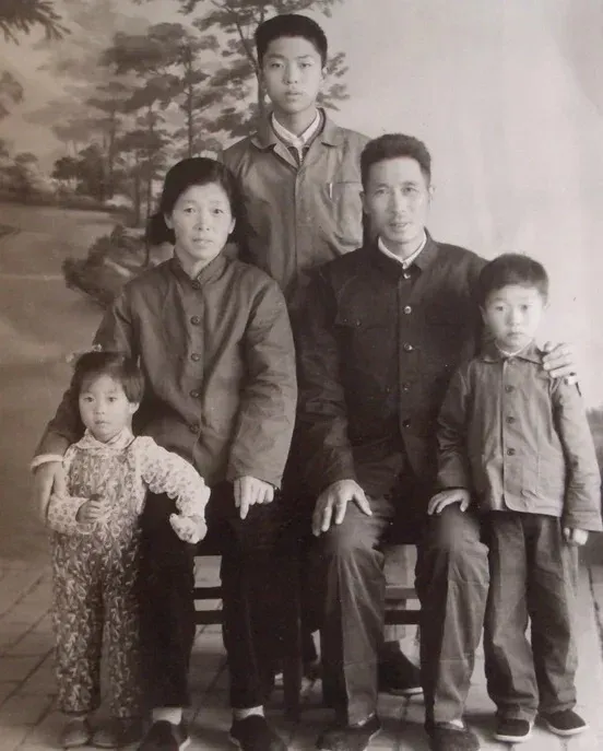 “父亲坐在正中间,穿着深色的中山装,扣子扣到了最上面一颗,神情拘谨而庄重。母亲坐在身旁,虽然端坐着,但她的肩膀和手,下意识往孩子那边倾斜。身后的孩子们,脸上带着少年特有的倔强和懵懂,最小的女孩紧紧抓着衣角,眼神亮晶晶的。”