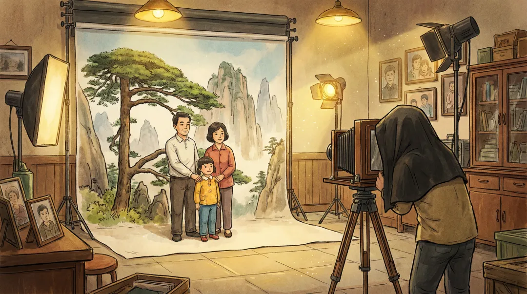 在那之后,孩子们会长大,去远方求学,组建家庭。每一次离别,都像是一次对这个画面的“裁切”。看着照片里那个眼神明亮的小女孩,再看看现在为了生活奔波的自己;看着照片里身姿挺拔的父母,再看看现在步履蹒跚的他们。