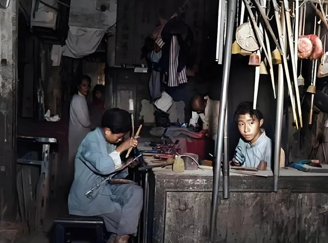 这个昏黄屋子里摆的桌案,是做杆秤的铺子,小伙子正拿刀修秤杆,另一边有人在抛秤砣,墙上悬着细长的秤杆像一排竹子,桌面油亮,边角被磨成圆,老板抬眼看人,眼神清亮却有点疲,小时候跟着爷爷去修秤,他伸手一抖,秤星儿一停,准头就来了,现在电子秤一摁就出来数字,快很多,手艺的味道却淡了。