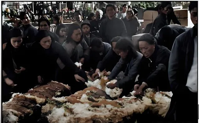 这堆被人手扒得乱七八糟的是棉包,围着的多是穿深色衣裳的妇人,一把一把往外抓棉絮,脸上是急劲儿,旁边的人把棉花揣进怀里,领口都鼓起来,北风一刮,谁都想先捞一把暖和,外公说那年冬天人多货少,棉花是命,手上扎了刺也顾不上,现在羽绒服厚厚的,出门怕冷就多穿一层,那时只有这点法子。