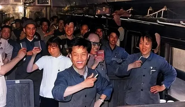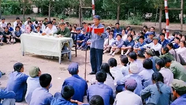 这张场面沉重,桌上摞着纸,背后旗子猎猎作响,冷风灌进袖管里,围着的人神情复杂,时代的锋利边角割在谁身上都疼,到了今天,照片摆在这里,提醒我们记得那段拧巴的日子。
