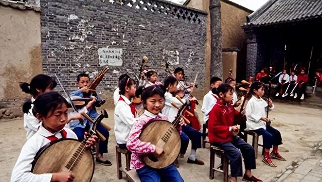 这排小凳子坐着的都是小乐手,手里拿的是二胡、板胡、扬琴和月琴,木头漆面发旧,弦一拨就“咿呀”起来,指头捏着松香,风一吹,粉末落在鞋面上,老师敲着节拍说别抢拍,别怯场,孩子们憋着笑,眼睛却亮亮的。