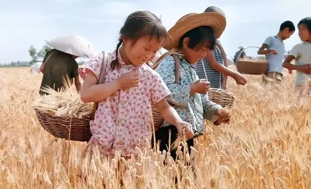 这一筐一筐的麦穗是孩子们挑出来的,柳条筐背带勒在肩窝里,麦芒扎得痒痒的,笑眯眯地往篮里装,姐姐喊我别玩了快挑净,太阳一落山,地头分糕点,甜得发腻,那滋味现在想起来都馋。