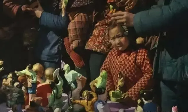 这堆五颜六色的是面人,捏的小猴子小戏子一个赛一个精致,小姑娘眯着眼挑挑拣拣,爸妈在后面嘀咕,买小的别买大的,回家别弄坏了,摊主指尖一转,面条就抽成了丝,真是巧手。