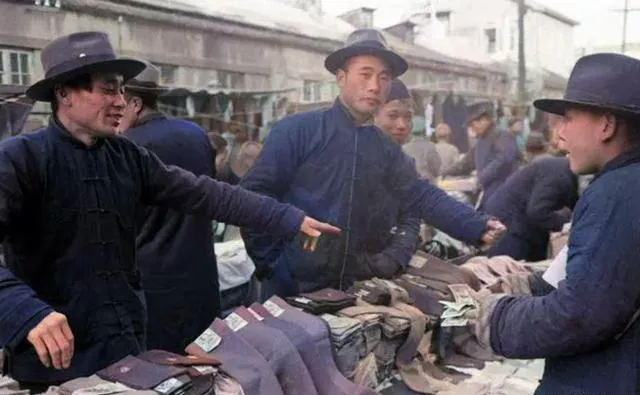 这几位穿着蓝褂子的是熟客,手里攥着票子,指着布边问缩水不缩水,掌柜把布一抖,纹路顺得很,妈妈说买回去给你做一条背带裤,针脚得实,缝好能穿仨年不变形。