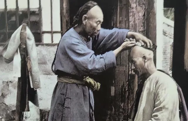 这个活计叫剃辫剃顶,蓝布长衫系根麻绳,剃刀一拉,汗都不敢擦,咔嚓声清清脆脆,我小时候还见过门口摆着一把折椅,三毛钱一个头,顺手还给你刮个面。