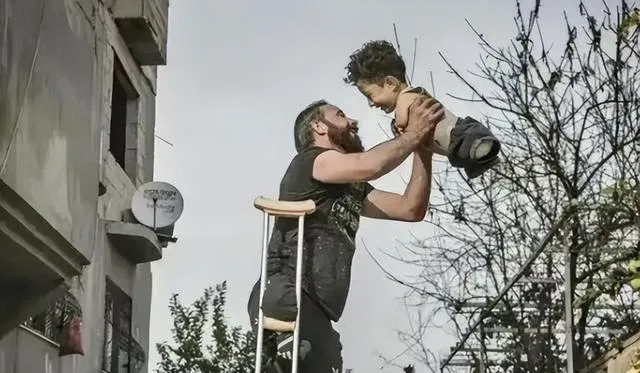 这张叫生命照,腋下拐杖还吊着,男人抬起孩子冲着天笑,孩子也笑,灰楼灰天里就这两张脸是亮的,以前觉得英雄一定穿盔甲,现在才懂,英雄多半穿布衣。