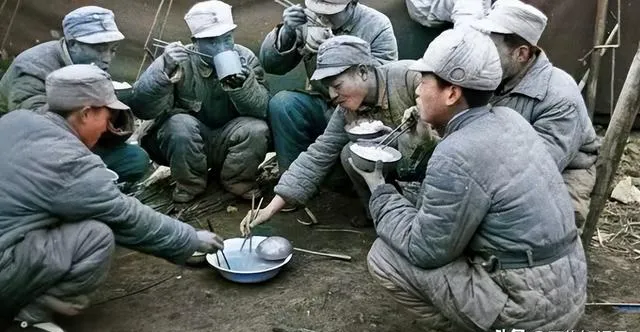 图里搪瓷碗碰搪瓷碗,盆里汤清得能照人,几个叶子漂着,吃得香,却不多话,能吃上一口热的,就已经很幸福。