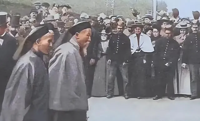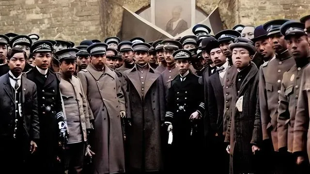 图中长大衣和礼帽排成一道墙,这叫官员合影,神情各不相同,却都朝着镜头正正当当立着,历史就爱把人摆成一列给你看。