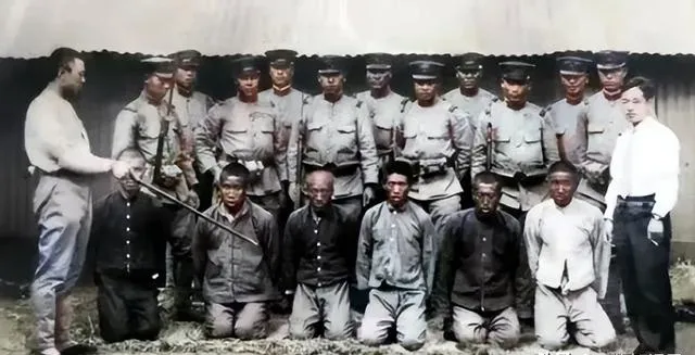 队伍后立前跪,腰杆最直的是拿刀的那位,照片拍得太平静了,平静得叫人心里发麻。
