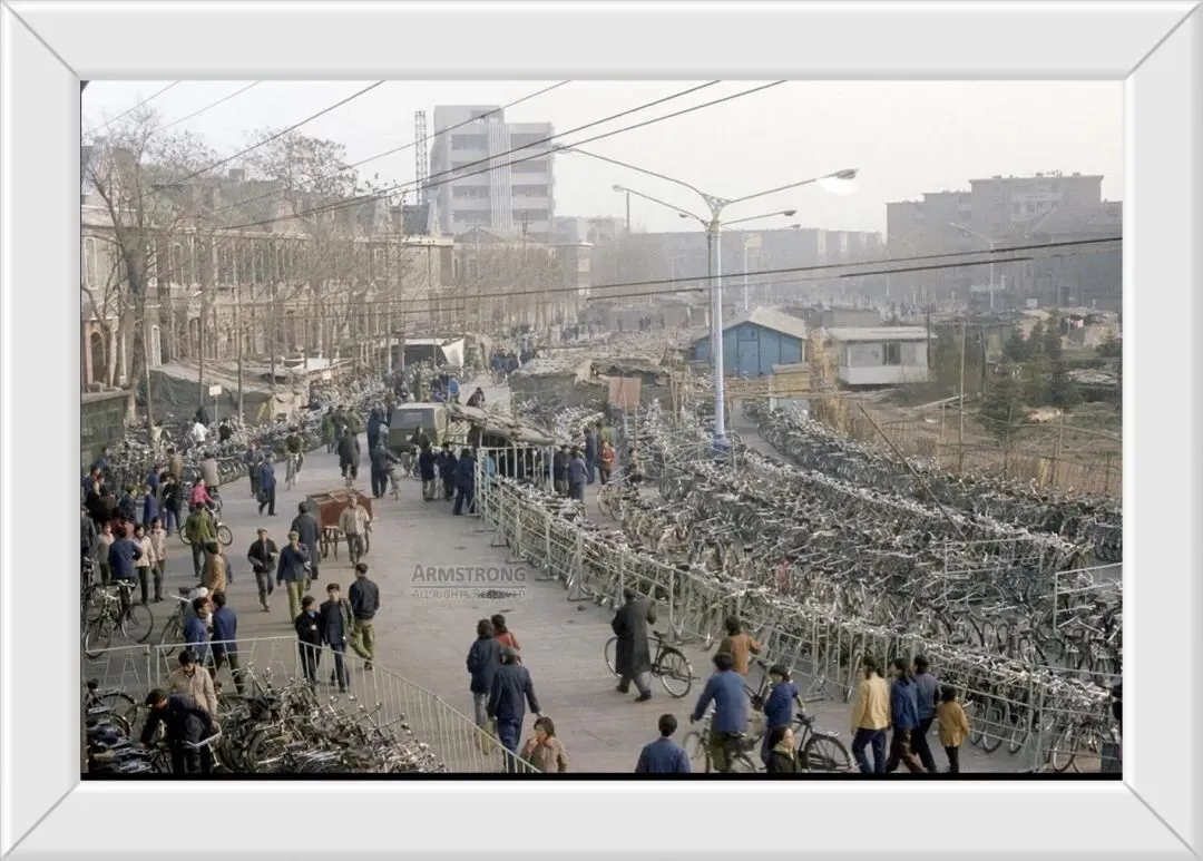 天津街头,这是自行车王国吗?这好像是厂里职工放车的区域。