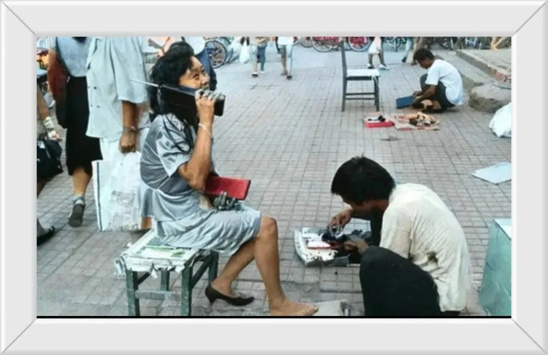 80年代的深圳,真是一线城市,有人手握“大哥大”的女子谈笑风生,在当时,一台大哥大售价高达8000—10000元,而普通职工月薪仅80—100元,是不折不扣的奢侈品。对比擦皮鞋的男人,贫富差距还是很大的。那时候是不是有个词叫“暴发户”?