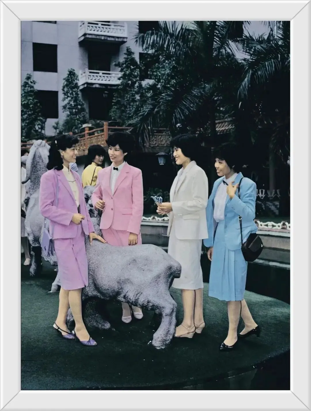 1983年广州白天鹅宾馆,衣着打扮都很时髦的女子,走在时代前沿,尽显80年代的精致与开放。
