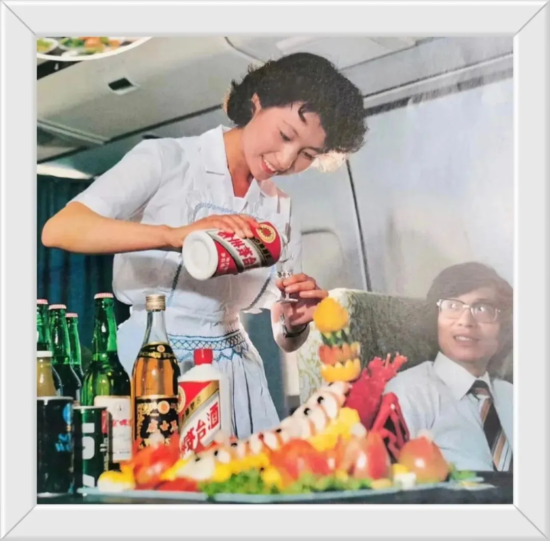 还有这张民航历史里的一段温暖记忆:从1975年开始,乘坐中国民航国际航班的旅客,可免费获赠茅台酒一瓶,不知啥原因,后来改为机上免费供应,一直延续到80年代末才取消。那时候的待遇还真高!