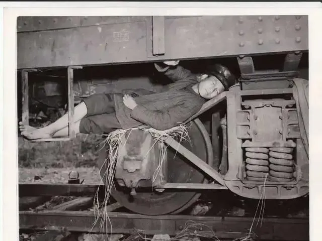 图里这块地方直接叫车底床,两条木板一垫,稻草一铺,人横着塞进去,手还要勾住铁梁,怕列车动了把人抖下去,这样睡一宿,醒来全身发麻,命却算保住了。