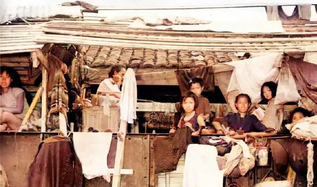 木板、竹箩、一口破箱子靠成墙,女人抱着婴儿缩在缝里,男孩伸杆子去勾挂在高处的锅,锅柄叮一声,旁边的人都吓一跳,声音不大,可在那会儿就是要命的信号。