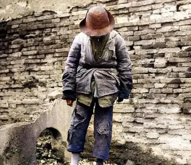 这位靠墙站着,帽檐压得很低,衣裳一层一层补丁,腰里还勒着绳子当带子,他不抬头,像是在跟谁道歉,又像是在喘气,谁走过去都不会多问一句,大家心里都明白。