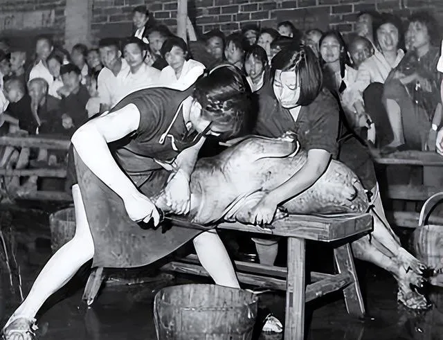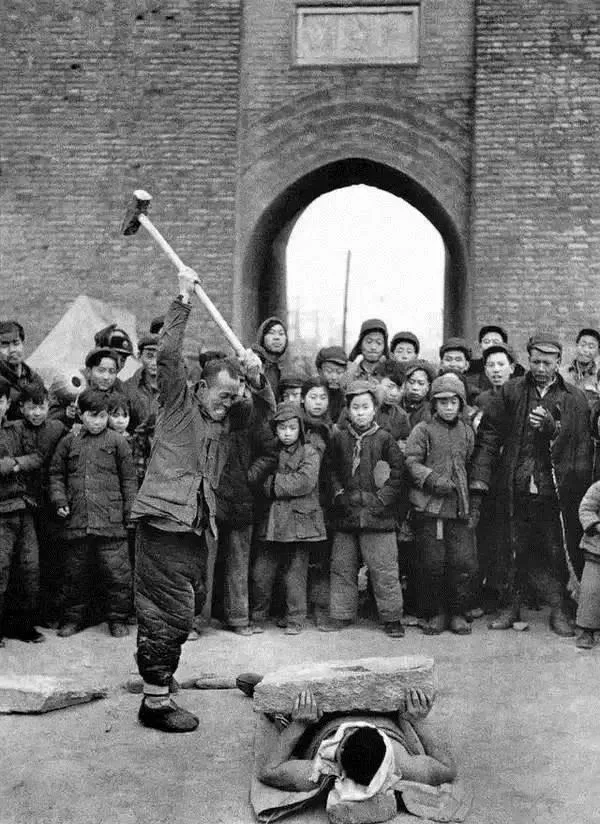 50年代中国珍贵老照片:批斗现场地主面若死灰,美女穿旗袍杀猪。