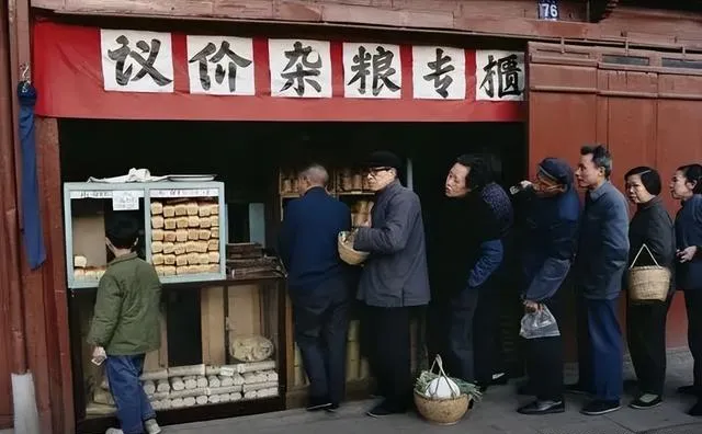 这个门头上写着议价杂粮,柜台里码着白面玉米面,奶奶把口袋口儿系好压在胳肢窝下,说今天能买上点黄豆渣就不错,以前买东西看票,现在扫码滴一下,换了法子,肚子还是要吃饱。