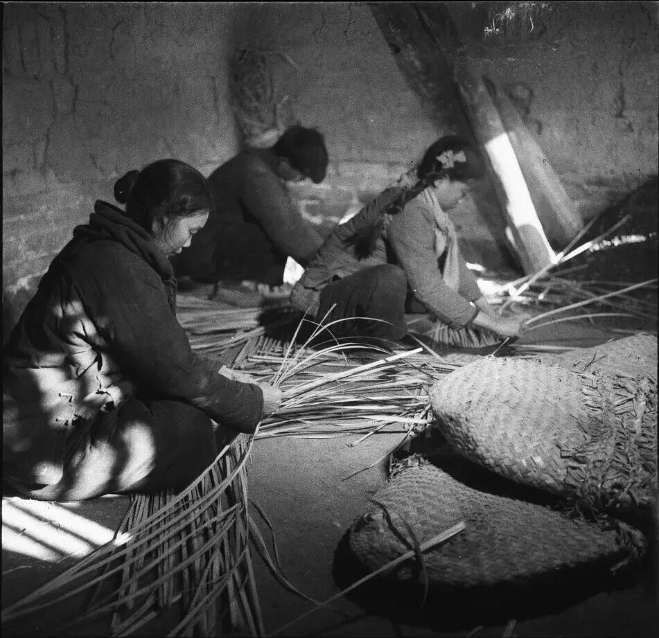 8.妇女们正在编制蒲包。