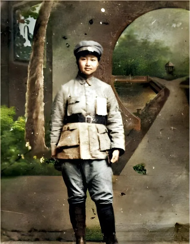 这个短发女孩叫女兵班长,军帽压着额头,棉衣一层一层叠得厚厚,腰带扣子像一只眼,盯着前路,她站在摄影棚的布景前,假山拱门画得软,反倒把她衬得硬,袖口有补丁,靴筒有褶,整个人像从潮湿的晨雾里走出来的火苗。