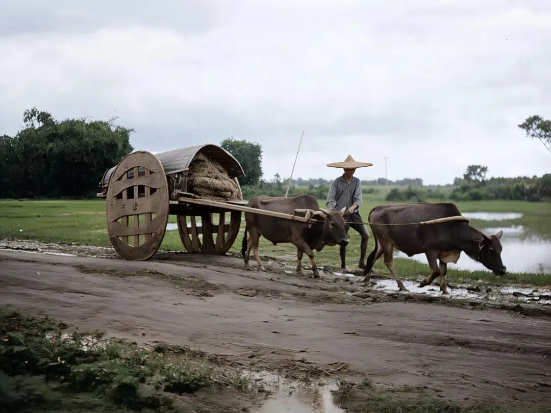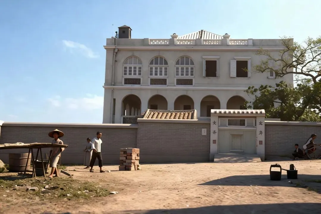 在"普仁醫院"的拱门下,另一种文明交融正在发生。1886年英国传教士柯达医生创办的这座医院,门楣上"普仁醫院"四个汉字与希腊式立柱并存。照片中,穿长衫的郎中与戴听诊器的西医在庭院里讨论病例,药柜上的青花瓷罐与玻璃试剂瓶相映成趣。这种传统与现代医学杂交现象除了在同样体现在教育领域:法国教会创办的"圣德学校"里,学生们既背诵《论语》,也学习法语语法,黑板上的算术题旁常画着十字架。正如当时一位传教士日记所写:"北海的孩子们能用粤语唱马赛曲,也会用拉丁语念主祷文。"离海岸不远的廉州湾,牛车轮碾过泥路的辙印深可见骨。两张水牛拉车的影像定格了农耕文明与海洋文明的对话:竹编的车篷下堆满海盐,车夫头戴的葵笠边缘还挂着晨露,牛蹄踏过红树林的气生根,将咸腥的海风与稻田的清香揉在一起。19世纪末的北海,已有"千舟聚港"的盛景,疍家渔排如水上浮城,而内陆运来的丝绸、茶叶则在海关验货后,通过特制的牛车转运至各国领事馆——这种"船-车-网"构成的运输网络,正是岭南"以海为田,以港为市"生存哲学的生动注脚。"大法國領事署"的石刻门牌,在老照片里泛着青灰色的光。1876年《烟台条约》签订后,这座融合了法式廊柱与中式瓦当的建筑,成为北海开埠的历史见证。影像中,领事馆前的竹林小径上,穿西装的法国外交官与戴瓜皮帽的中国买办擦肩而过,石板路上的马蹄印与皮鞋印交错重叠。30年代时的北海关大楼,那时北海海关简称北海关,建于清光绪三年(公元1883年)北海第一大洋楼一北海关职员宿舍楼,始建于1905年,位于今中山东路与新安街交叉口的西南角,建筑面积约3000平方米,三层,为北海近代西洋建筑中最大的一幢,1941年被日本人轰炸损毁了东头三分之一,修复剩余部分后尚有2000多平方米继续使用,1988年被完全拆除新建了海关宿舍二区住宅楼。此照片拍摄时间为上世纪二十年代。