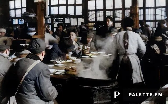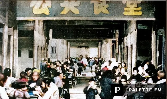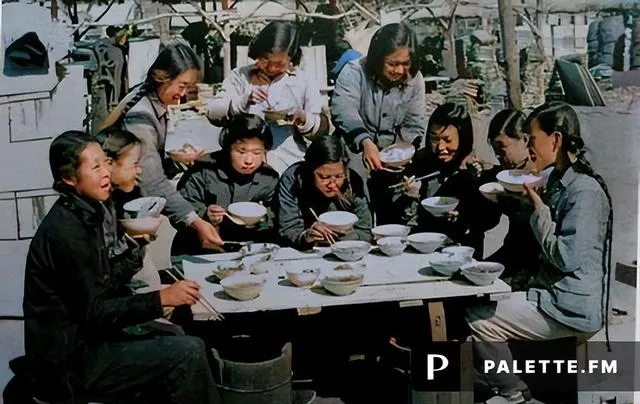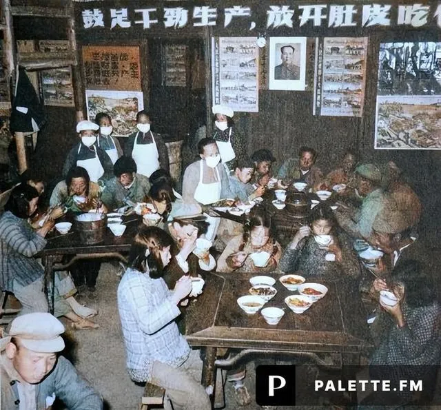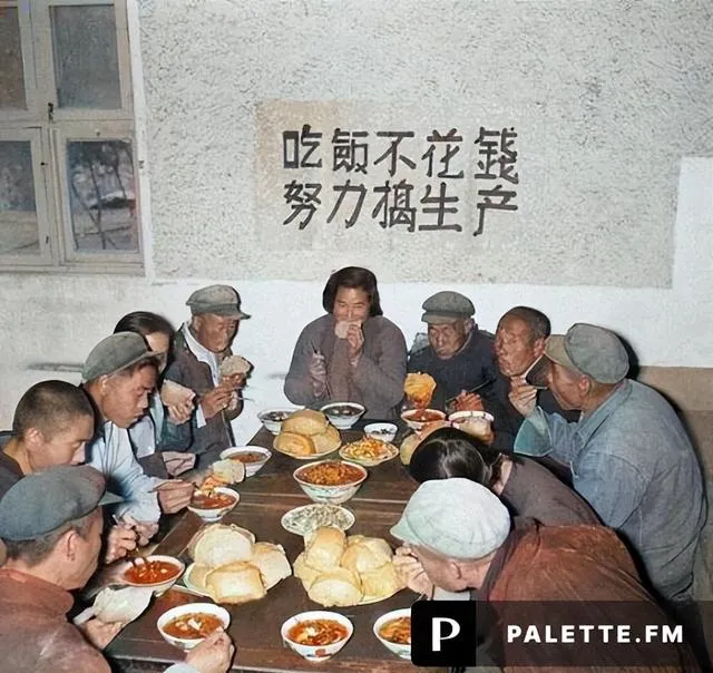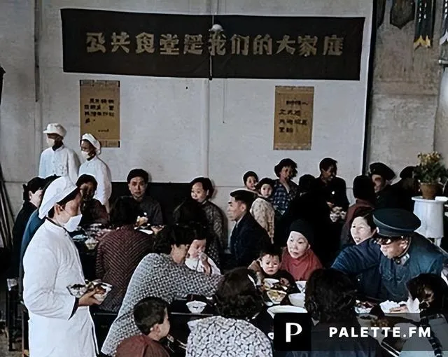 人民公社大食堂彩色老照片:放开肚皮吃饱饭,不要你掏一分钱。