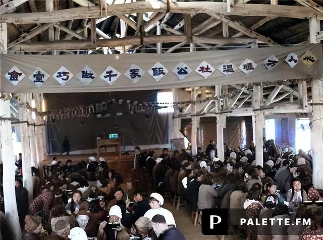 这叫“百人桌阵”,棚下排到尽头,看着眼晕,队长一招呼,先给老人孩子夹,声音从这头传到那头,像浪头一阵一阵,放在现在,谁家能一次摆出这么多桌,怕是婚宴都不一定有这场面。
