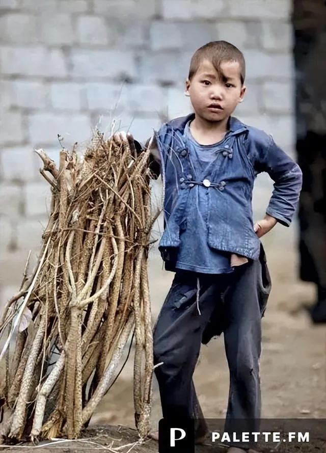 这个孩子手里拽的是柠条柴,干硬扎手,袖口磨在刺上起了毛,柴捆比人还高,走两步停一停,喘口气再往前挪,爷爷说,谁家娃能把一捆柴背回家,晚上就多添半勺米,家里穷,力气就是奖状。