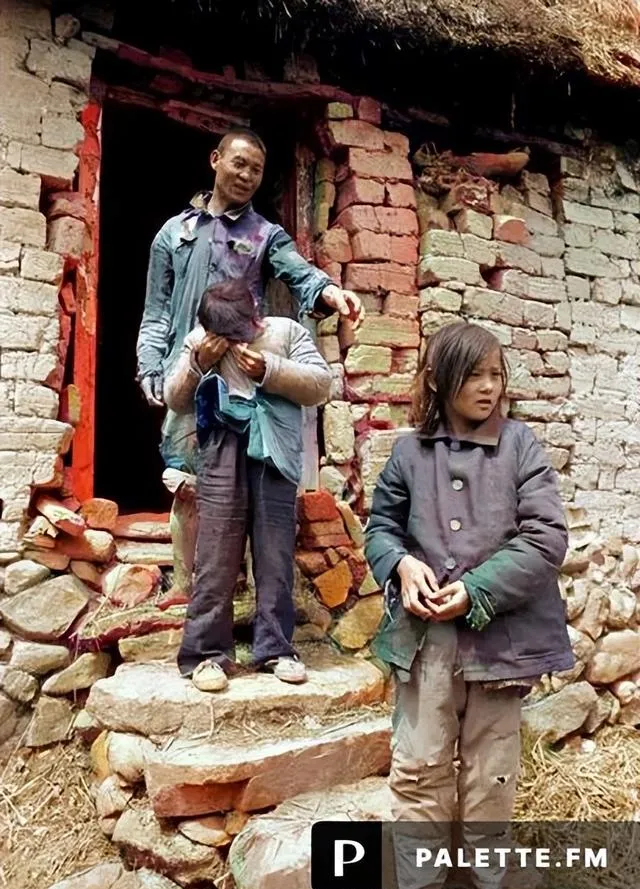 土坯墙上红色的门框是打新漆的对边,一家人站台阶上,孩子揉着眼睛不愿意照相,小女儿衣襟被风掀着,露出里面打补丁的里衣,爸爸笑着摆手说,快去读书,别管镜头,镜头不当饭吃,学问才当饭吃。